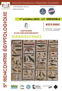 Notre Association Dauphinoise d’Égyptologie Champollion vous invite à célébrer le bicentenaire du déchiffrement des hiéroglyphes en compagnie de 6 égyptologues spécialistes de Champollion et de l’écriture. À l’auditorium du musée de Grenoble le 1er octobre 2022.