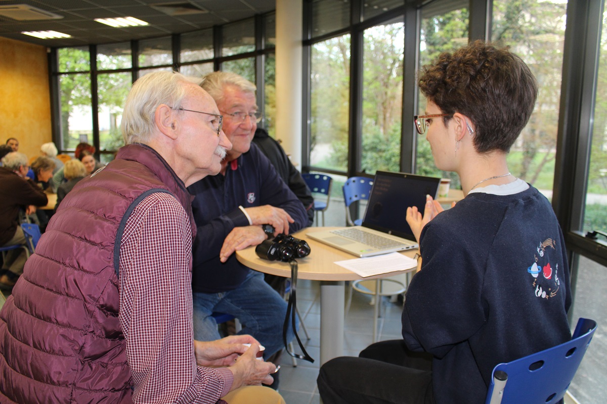 Les étudiants de l’Université Grenoble Alpes ont dévoilé leur centres d’intérêt : L’intelligence artificielle, l’observation du ciel étoilé à l’œil nu, la réalisation et le coupage d’un film. Pendant une heure et demi les deux groupes ont échangé avec un grand engagement leurs savoirs et savoir-faire. Ce fut un partage enrichissant pour les deux groupes, qui s’est terminé par un pot convivial.