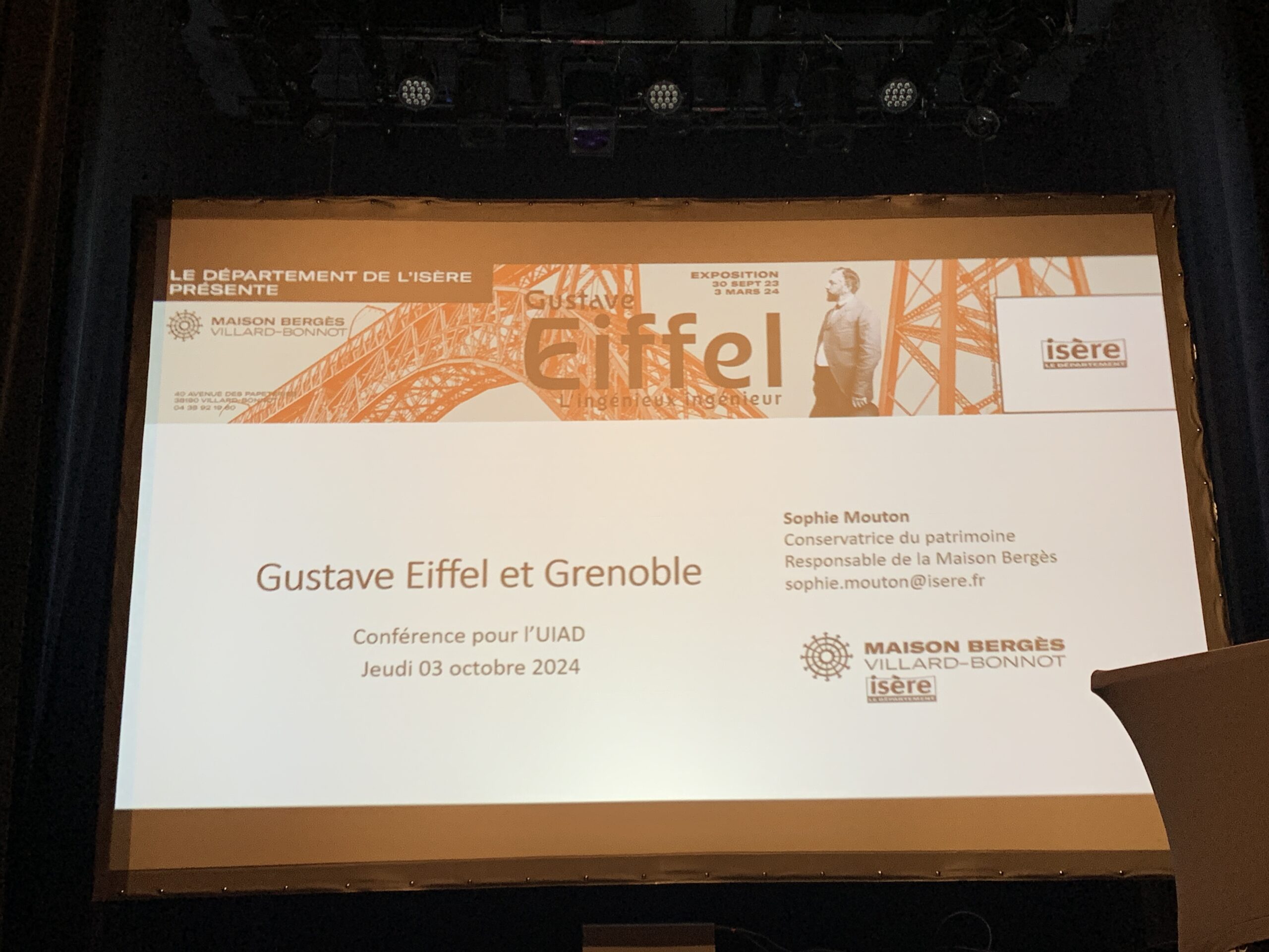 Sophie Mouton, conservatrice du musée Aristide Bergès de Villard-Bonnot, lors d’une conférence organisée par l’UIAD le 3 octobre 2024 à La Faïencerie de La Tronche, a su nous faire partager sa passion pour les travaux exceptionnels de Gustave Eiffel. Ingénieur Centralien comme Aristide Bergès et à la même époque.