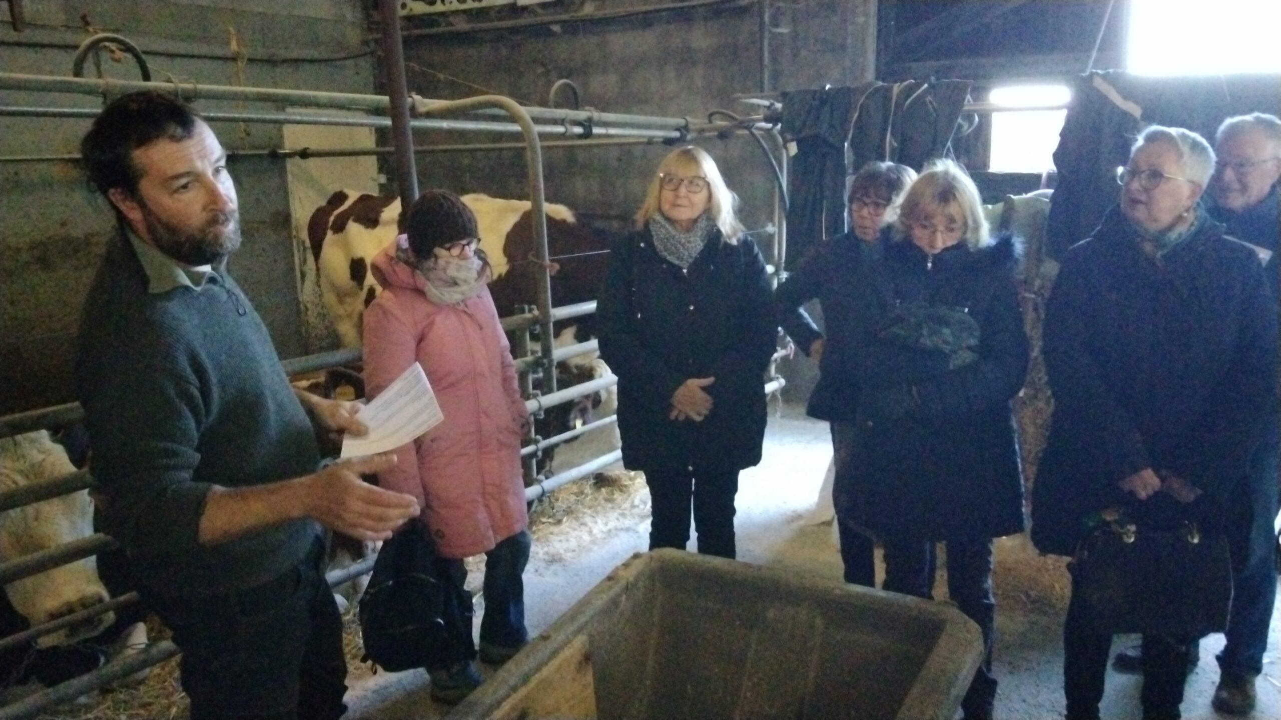 C’est un groupe de séniors d’une quinzaine de personnes issus de l’UIAD qui a d’abord fait connaissance avec l’exploitation de Stéphane Bonnois, exploitant agricole à Villard Saint Christophe. À cause des mesures sanitaires sur les cheptels, les voitures se sont parquée à 500 m de sa ferme.