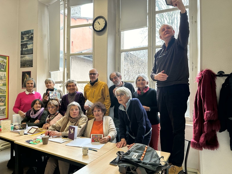 C’est ainsi que le 9 janvier, premier cours de 2024, le groupe au grand complet s’est joyeusement livré au jeu de « l’ami secret ». Ce fut une joute roborative mais des plus courtoises, un florilège de poèmes joliment troussés, de haïkus finement ciselés dans les règles japonaises de l’art et de récits pleins d’énigmes ou d’humour.