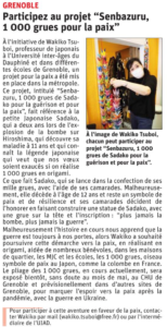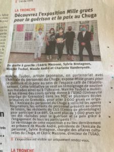 L’Amicale du personnel et la direction culturelle du CHU de Grenoble s’associent au projet de Wakiko Tsuboi, artiste japonaise, pour confectionner 1000 grues pour la paix et la maladie.