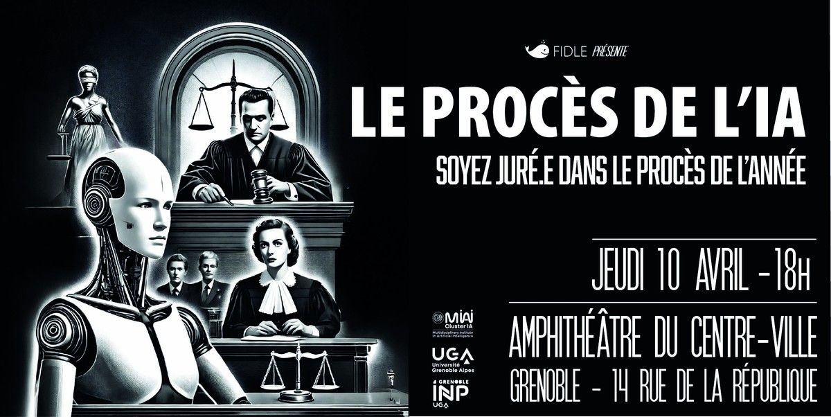 Proposé par la formation FIDLE, avec le soutien du CNRS, du MIAI Cluster IA et de l’Université Grenoble Alpes, cet événement unique vous plonge au cœur d’un véritable procès théâtralisé où l’IA est sur le banc des accusés pour répondre elle-même aux accusations.