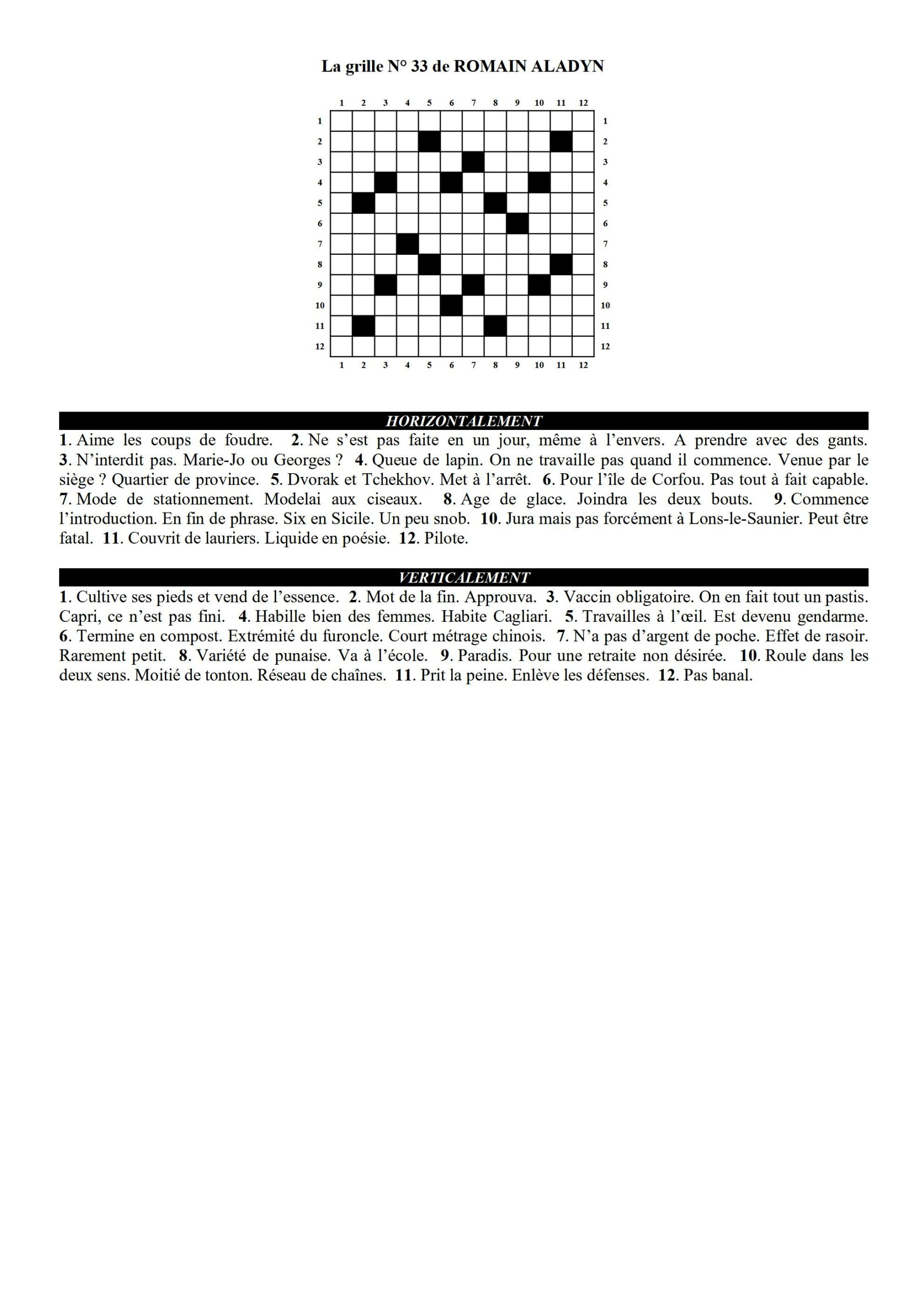 Vous la trouverez sous la signature Romain Aladyn, pseudonyme qu’ils se sont choisi. La solution de la grille est fournie la semaine suivante.