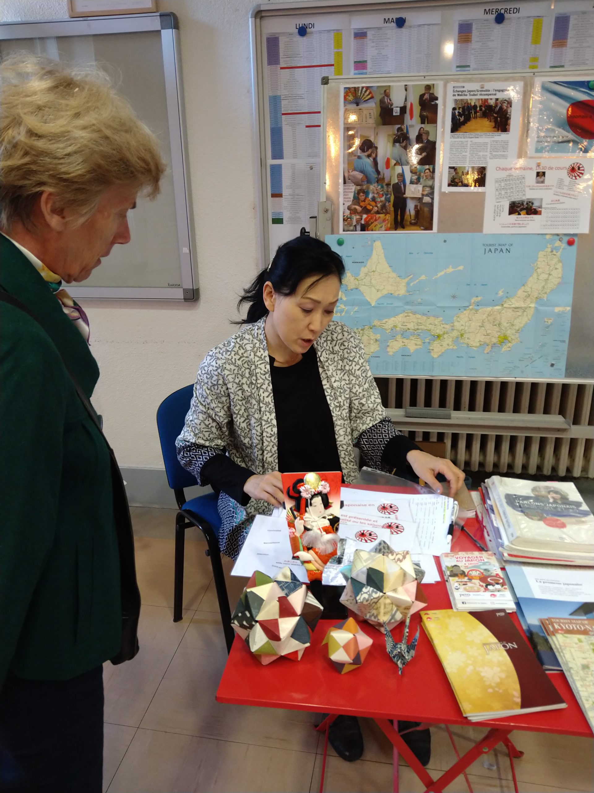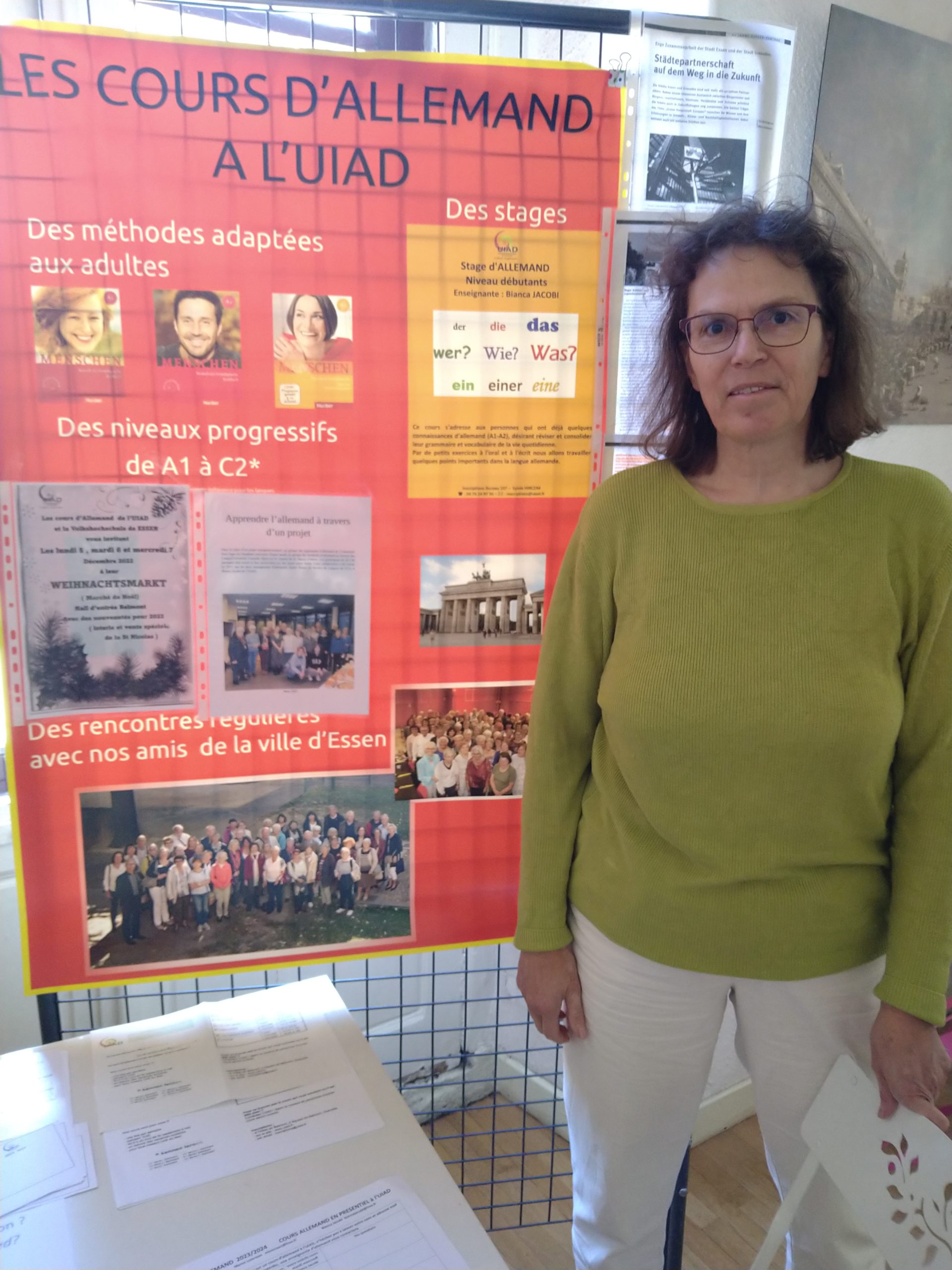 La Commission Enseignement avait souhaité donner un dernier coup de projecteur, au moment de la rentrée à l’UIAD, à la douzaine de cours de langues (des Hiéroglyphes … au Japonais). Les stands étaient colorés et les enseignants pouvaient répondre à toutes les questions concernant le déroulement des cours.