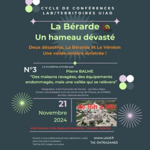 Nous sommes très intéressés par les conférences sur La Bérarde suite à la catastrophe qui a tant abimé ce petit village de l’OIsans que nous aimons tant. Nous n’avons pu nous rendre aux conférences d’octobre et serons encore absents en novembre.