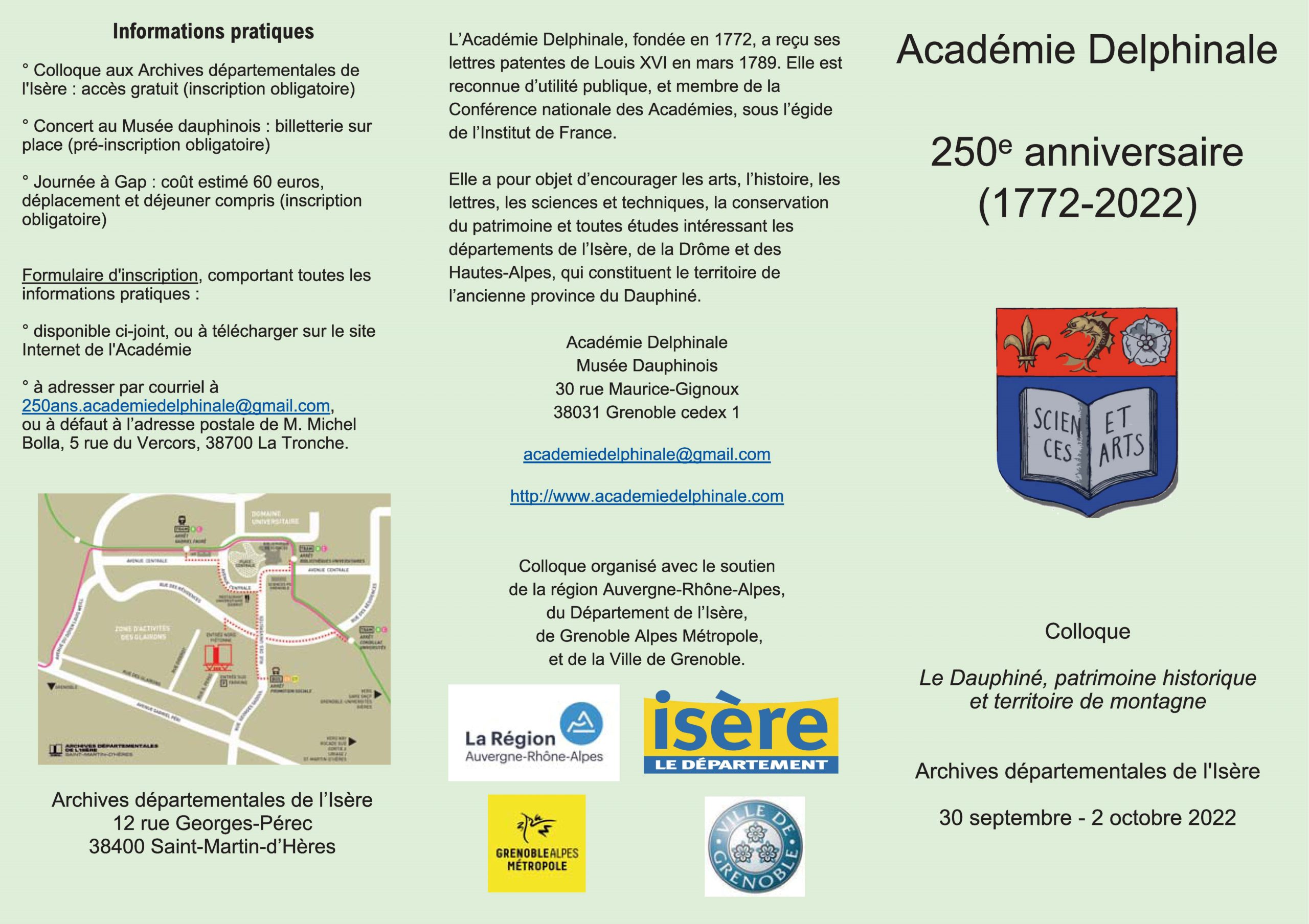 l’Académie Delphinale fête ses 250 ans en septembre !