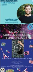 La conférence sera suivie par un bal sur des musiques des années 70 au Jardin de Ville à 20h.