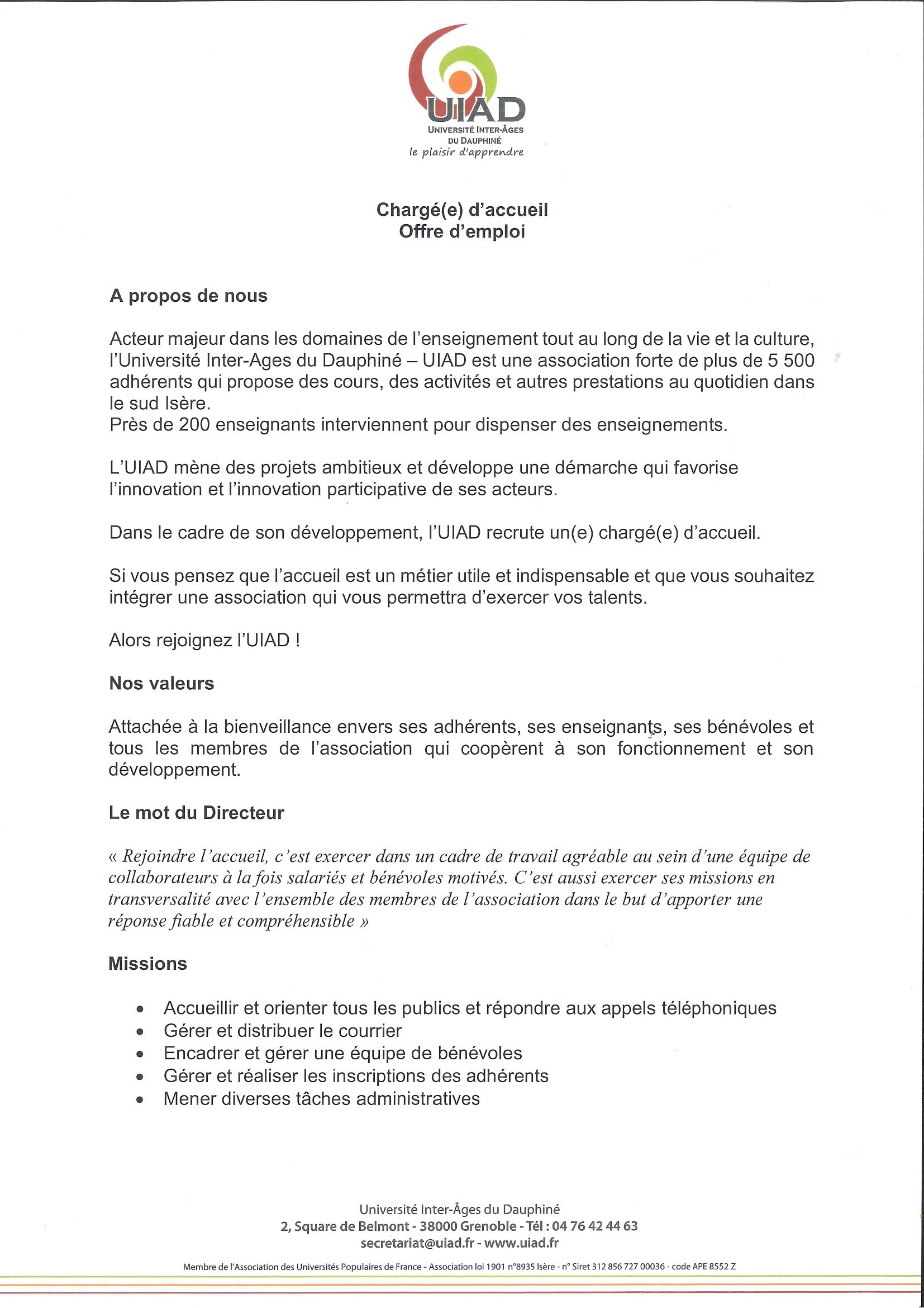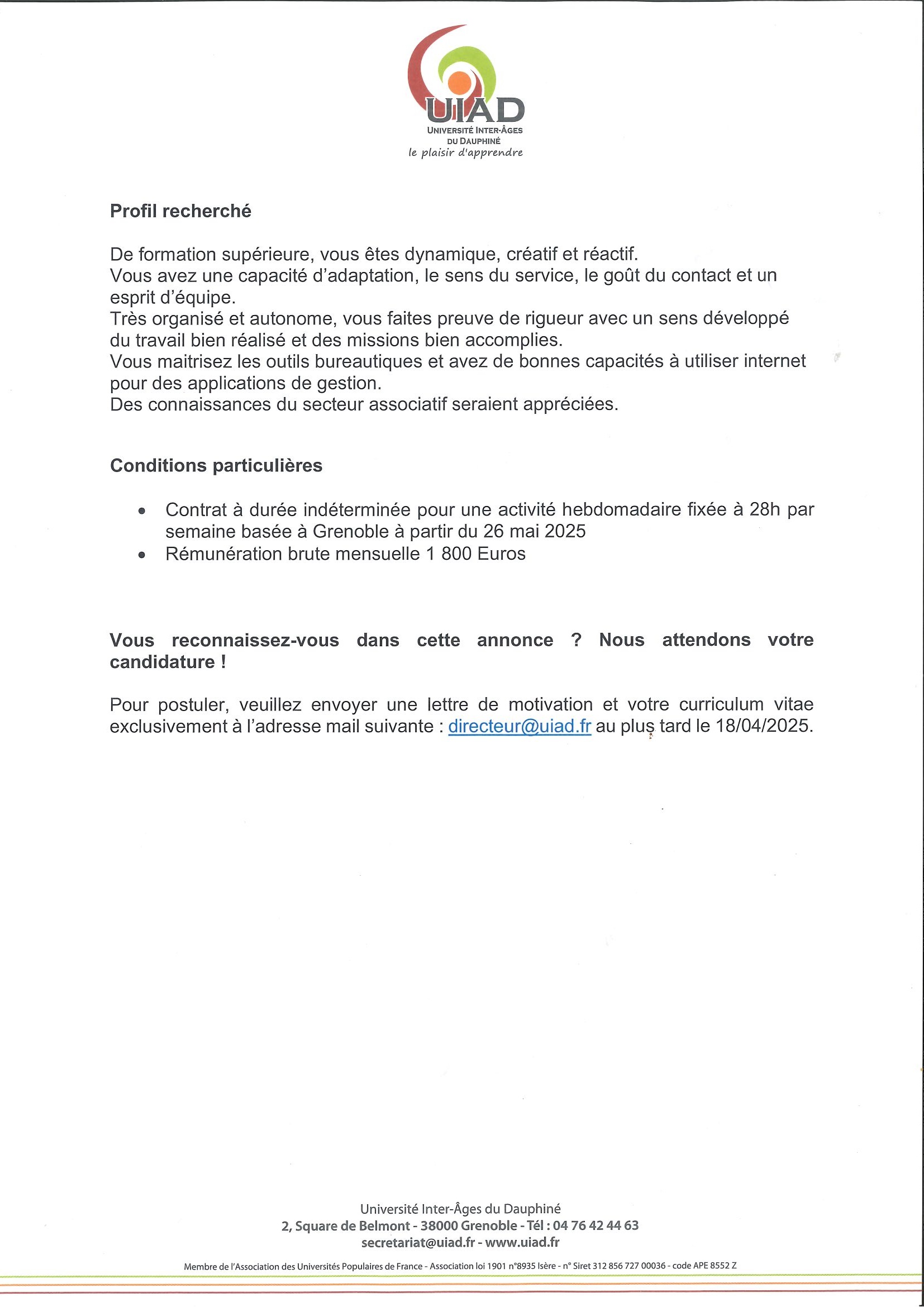 l’UIAD recrute par Thesie Fontaine · 29 mars 2025 De la part de : Service communication pour le Directeur. Pour voir l’annonce en PDF, cliquez ici