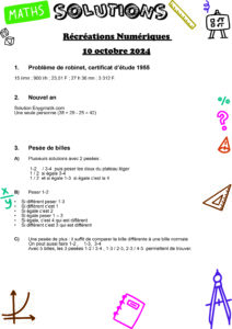 Mathématiques récréatives par Jean-Jacques Menthonnex · 19 octobre 2024 La semaine dernière Christophe Kiény vous avait proposé ses “Mathématiques récréatives”, voici les solutions :