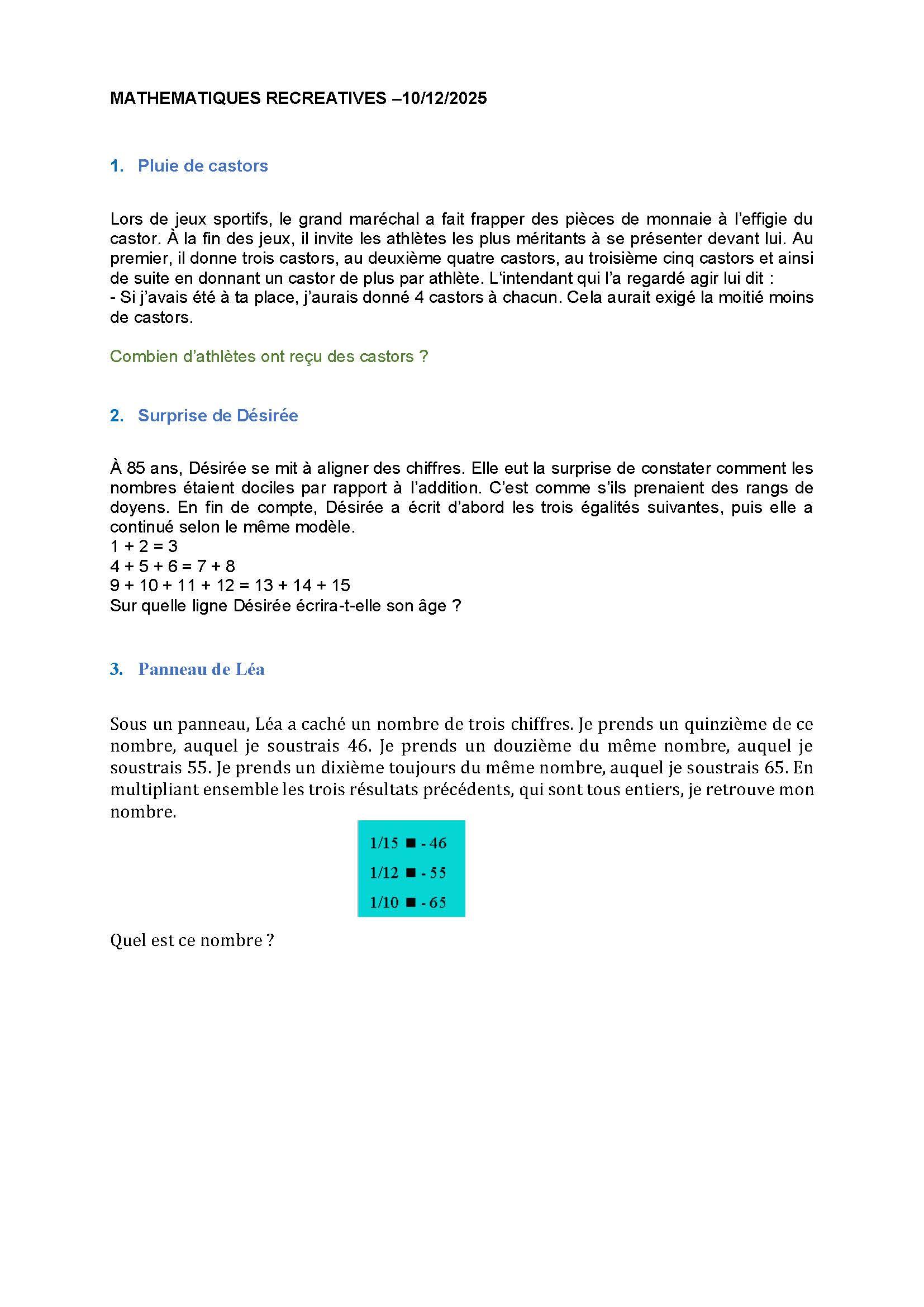 Voici les exercices de “Mathématiques récréatives” de Christophe Kiény pour cette semaine: amusez vous bien !