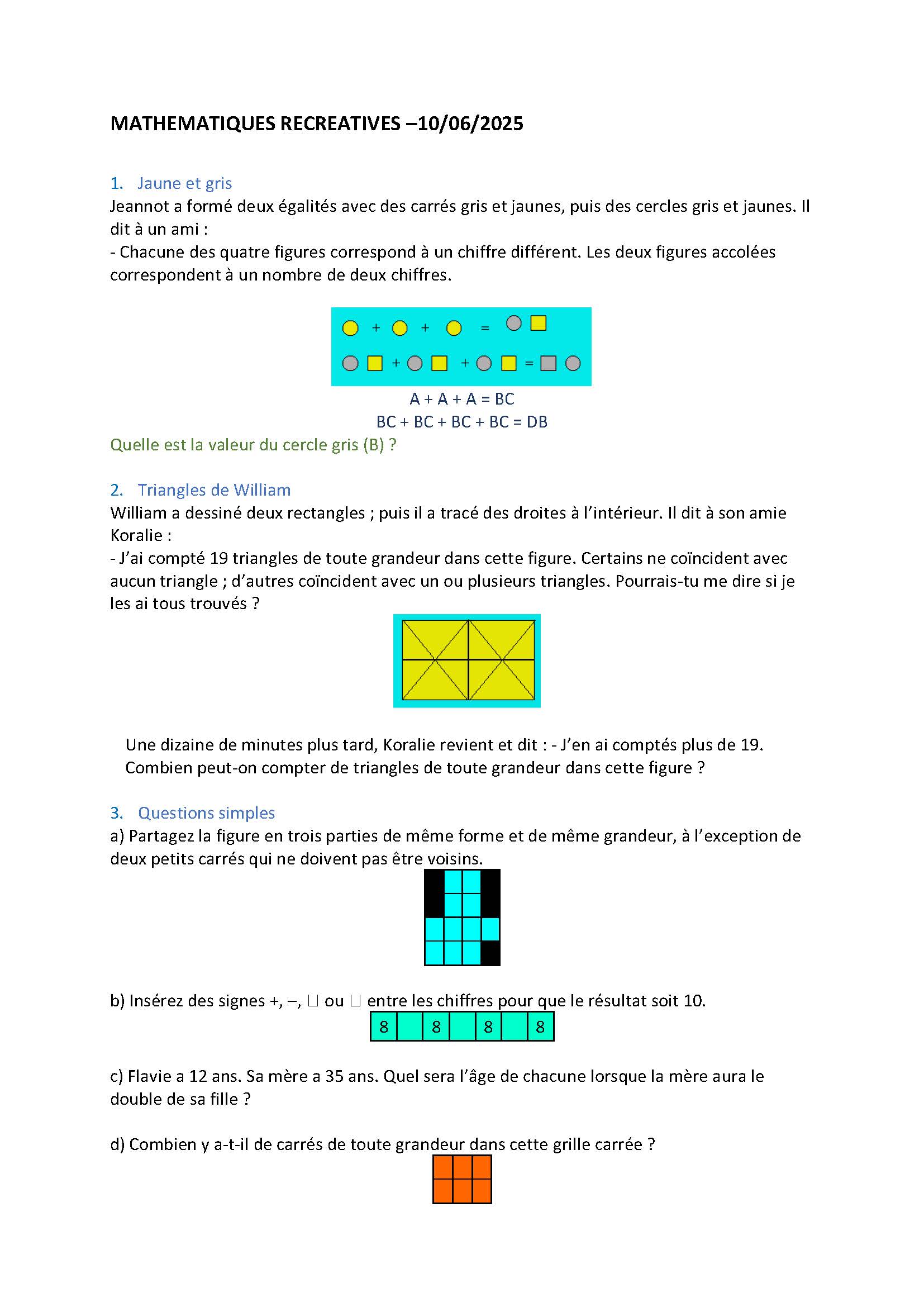 Mathématiques récréatives du 10 juin 2025