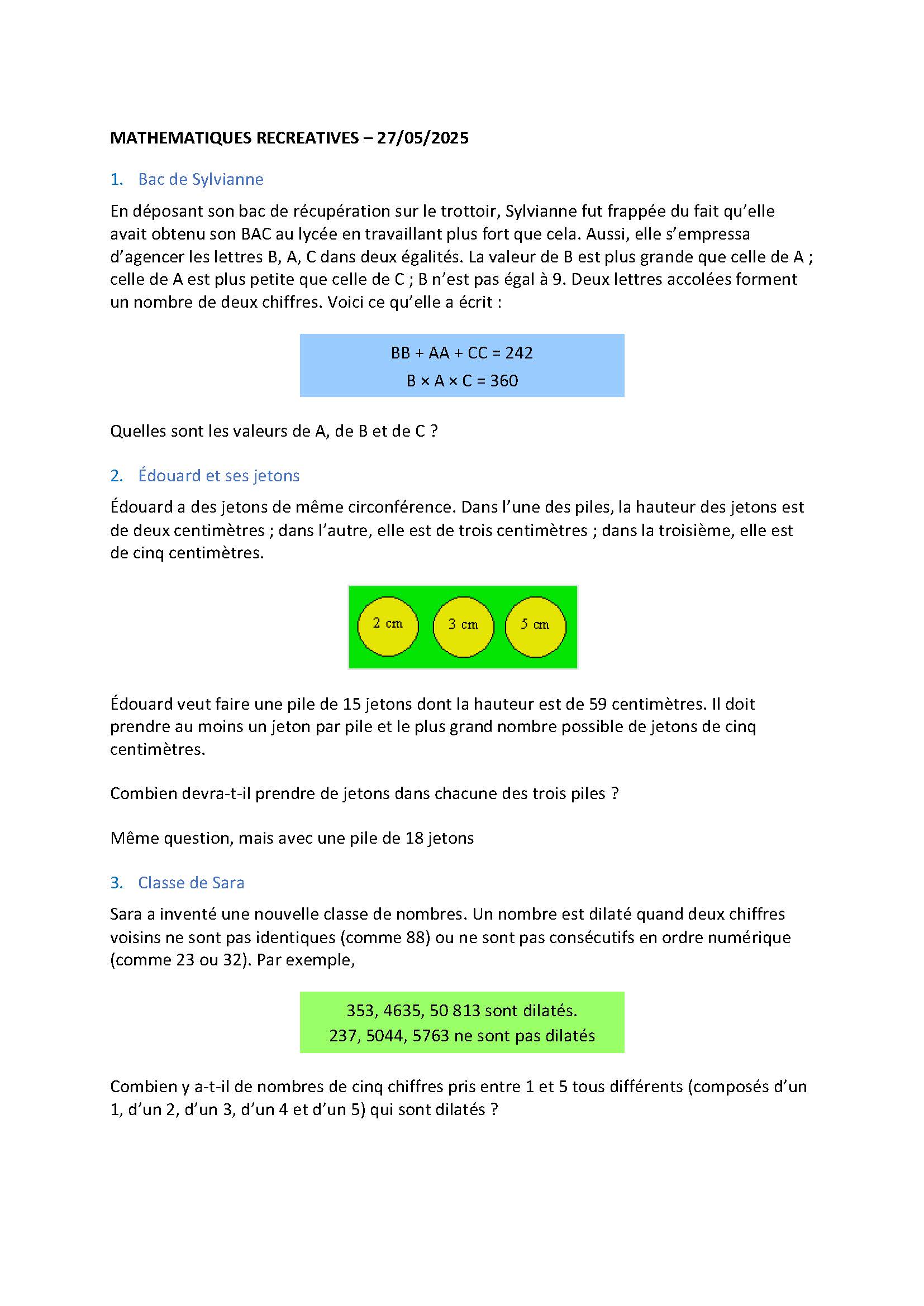 Christophe Kiény vous propose ses “Mathématiques récréatives” : amusez vous bien !