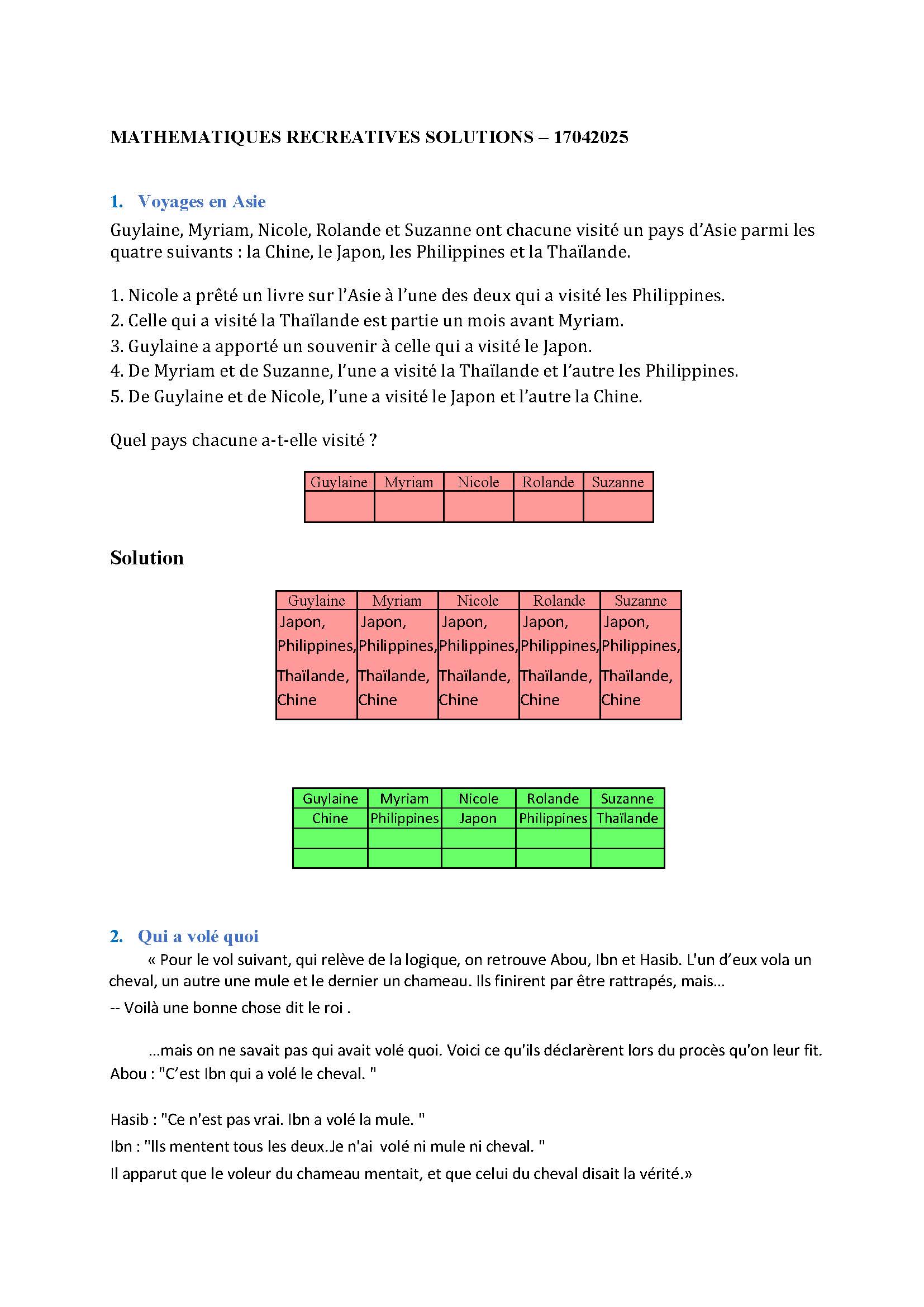 La semaine dernière Christophe Kiény vous avait proposé ses “Mathématiques récréatives”, voici les solutions :