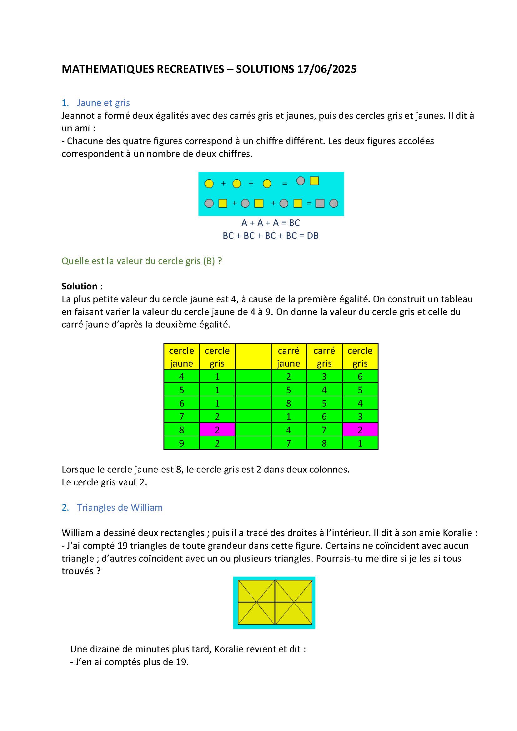 Mathématiques récréatives – solutions du 10 juin 2025