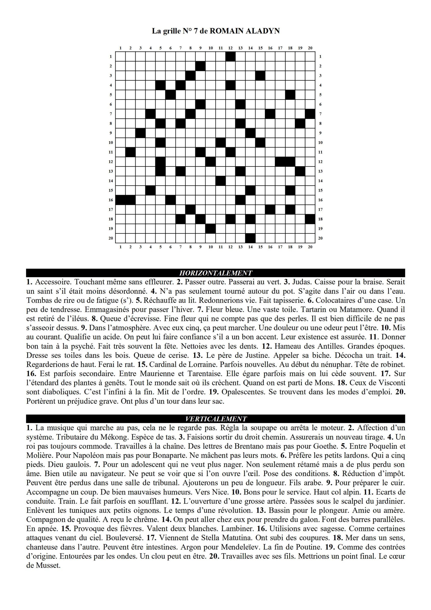 Vous la trouverez sous la signature Romain Aladyn, pseudonyme qu’ils se sont choisi. La solution de la grille est fournie la semaine suivante.