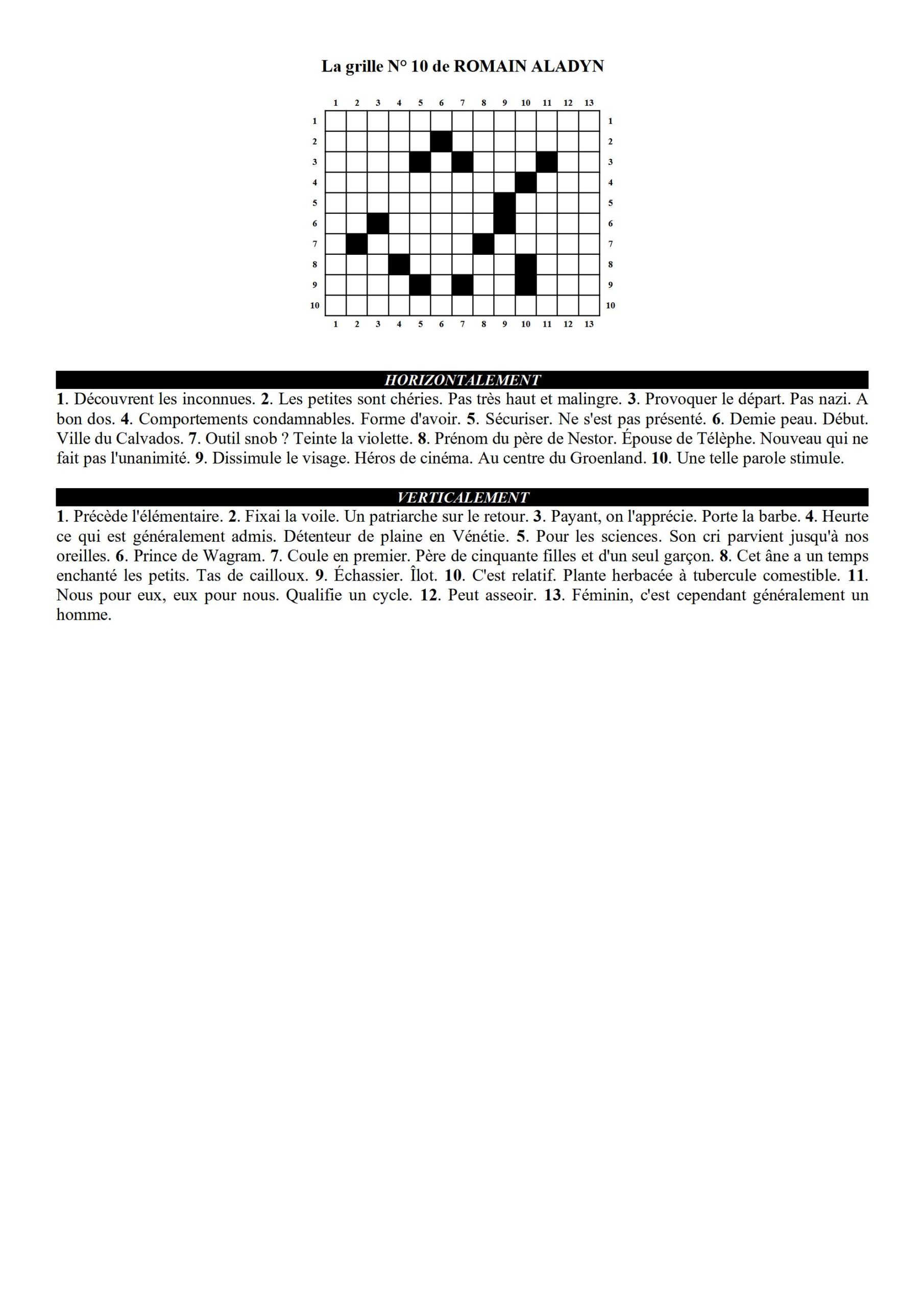 Vous la trouverez sous la signature Romain Aladyn, pseudonyme qu’ils se sont choisi. La solution de la grille est fournie la semaine suivante.