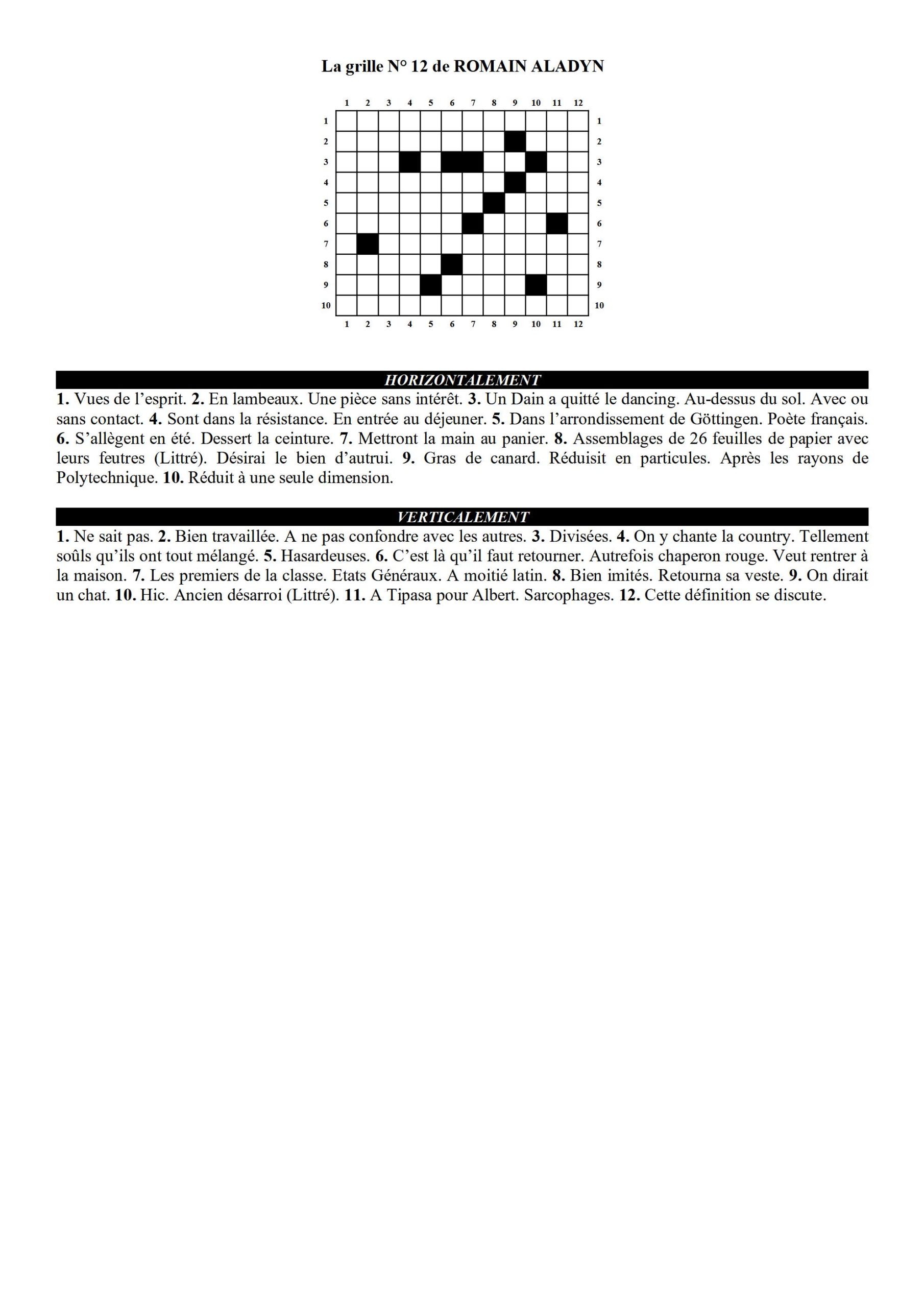 Vous la trouverez sous la signature Romain Aladyn, pseudonyme qu’ils se sont choisi. La solution de la grille est fournie la semaine suivante.