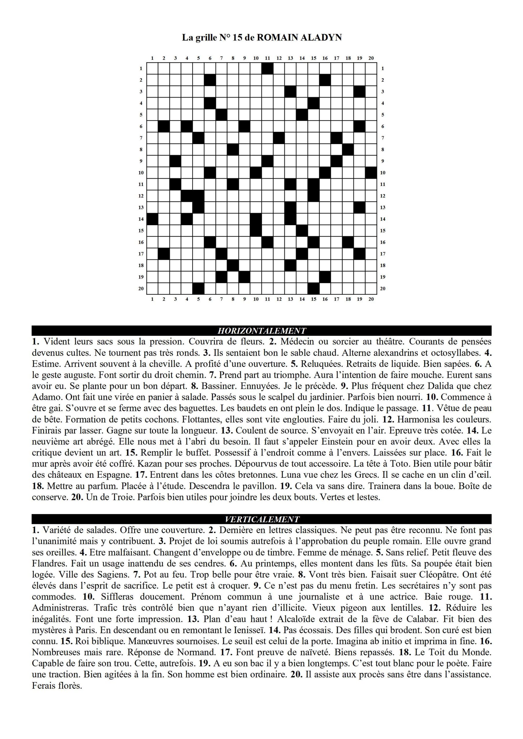 Vous la trouverez sous la signature Romain Aladyn, pseudonyme qu’ils se sont choisi. La solution de la grille est fournie la semaine suivante.