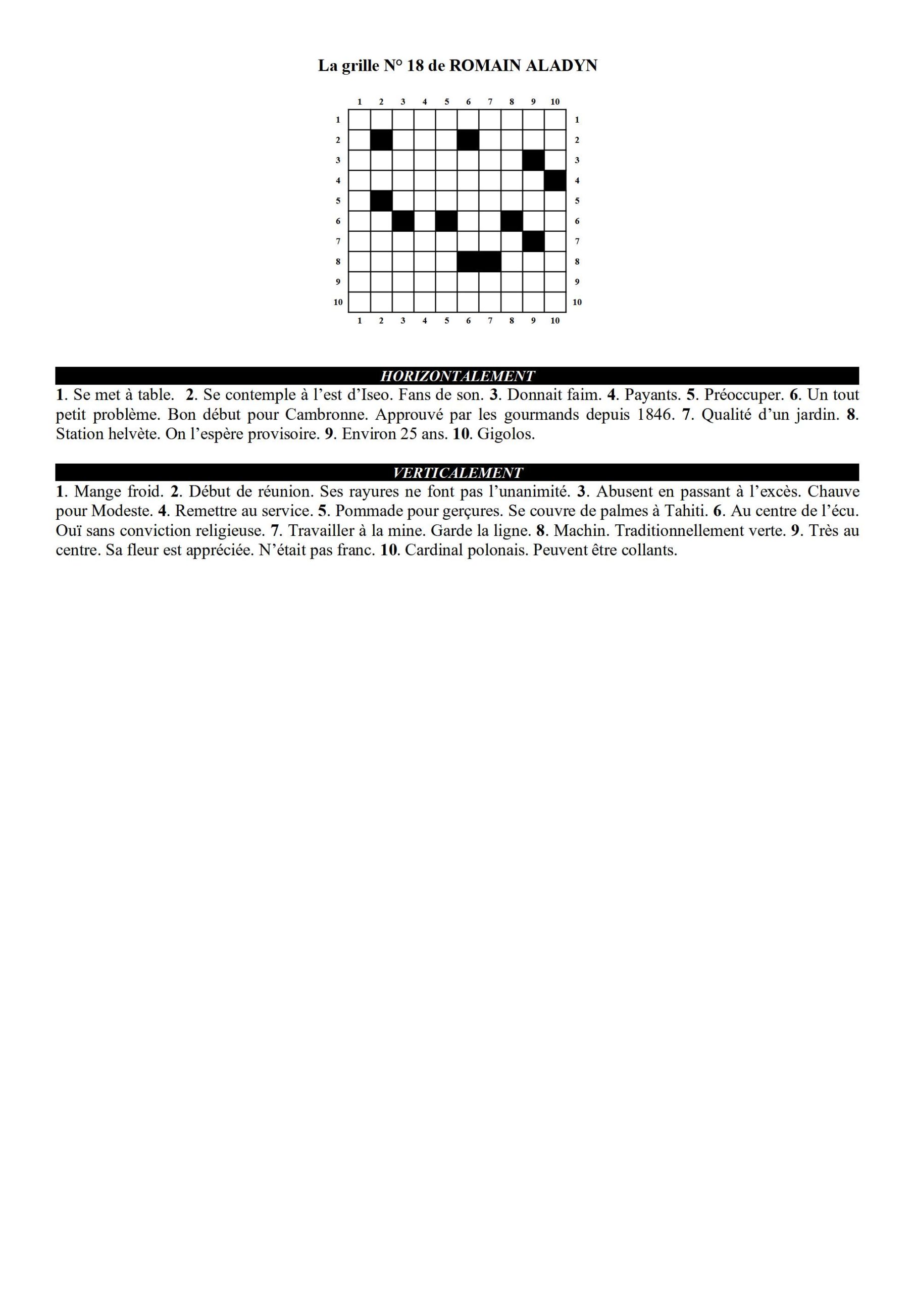 Vous la trouverez sous la signature Romain Aladyn, pseudonyme qu’ils se sont choisi. La solution de la grille est fournie la semaine suivante.