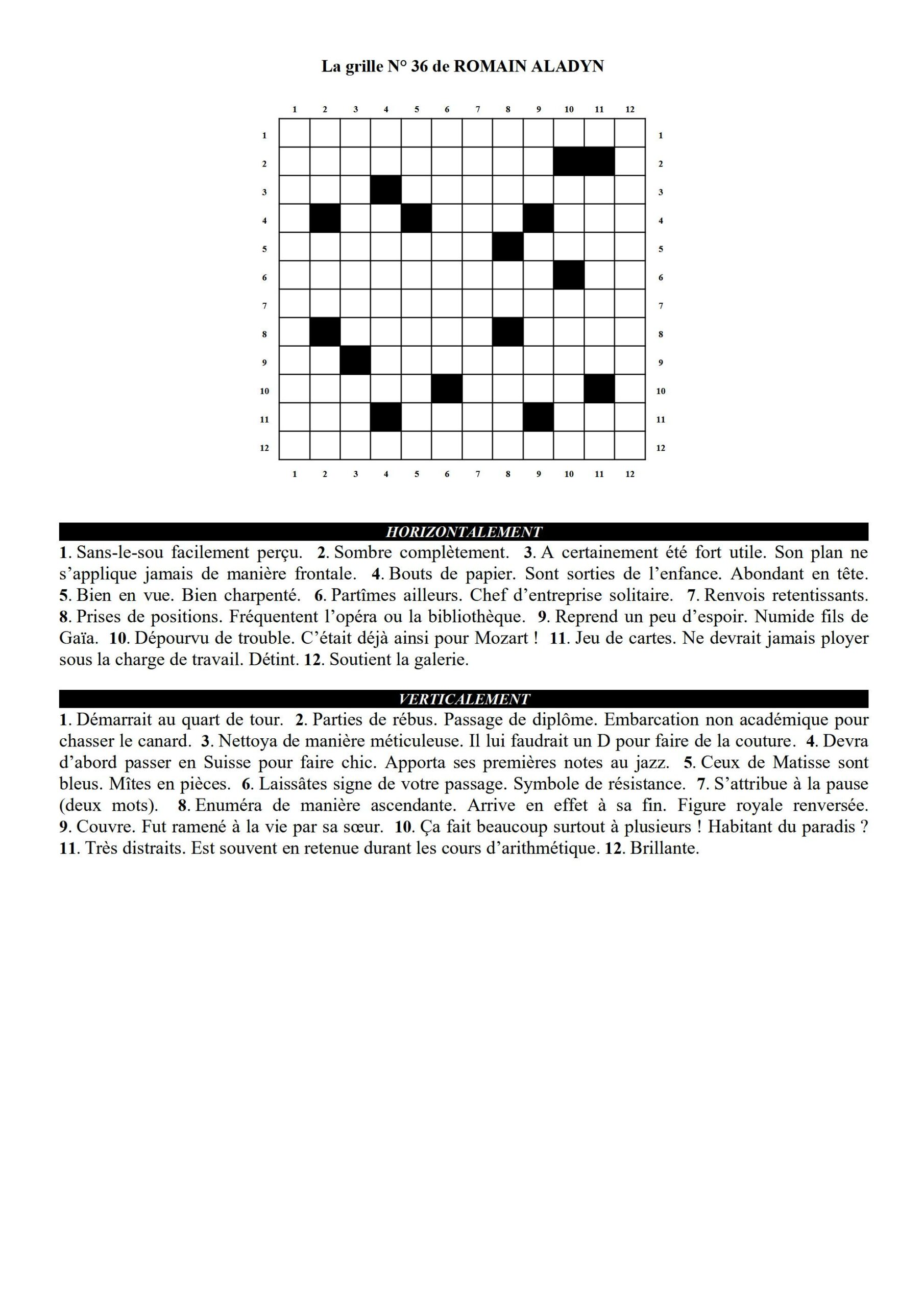 Vous la trouverez sous la signature Romain Aladyn, pseudonyme qu’ils se sont choisi. La solution de la grille est fournie la semaine suivante.