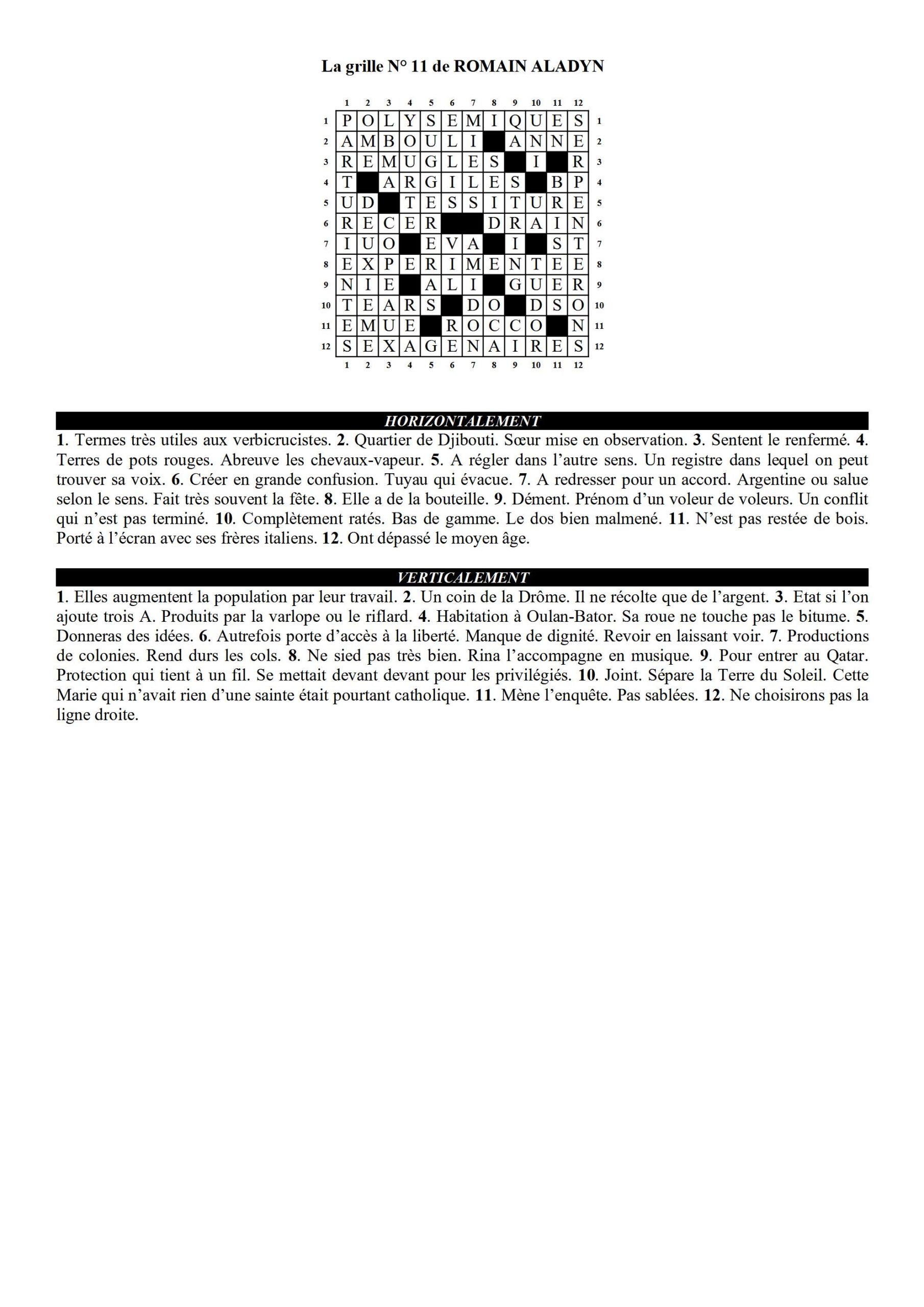 Mots croisés solutions – grille 11