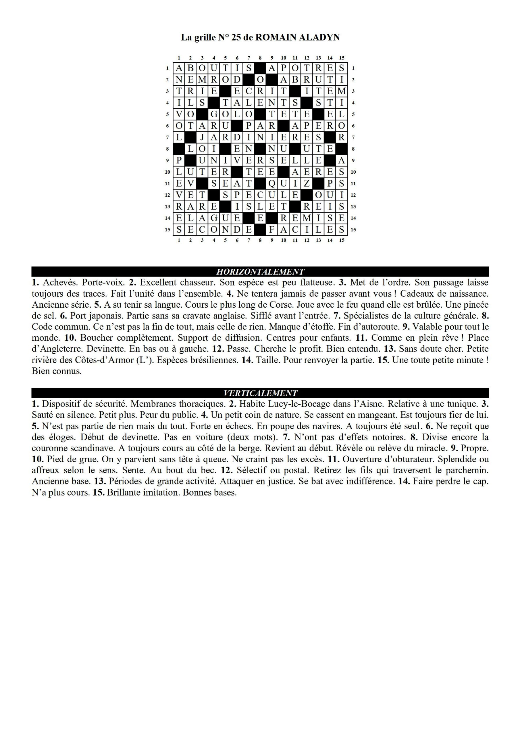 Les membres de cet atelier souhaitent savoir ce que vous pensez de cette rubrique de mots croisés dans le blog ; vous pouvez leur adresser un message à romainaladyn@gmail.com en leur disant si vous les faites régulièrement, si vous les trouvez trop simples ou au contraire trop difficiles, si vous avez des propositions d’amélioration, et en formulant toutes remarques que vous jugez utiles. Merci pour eux.
