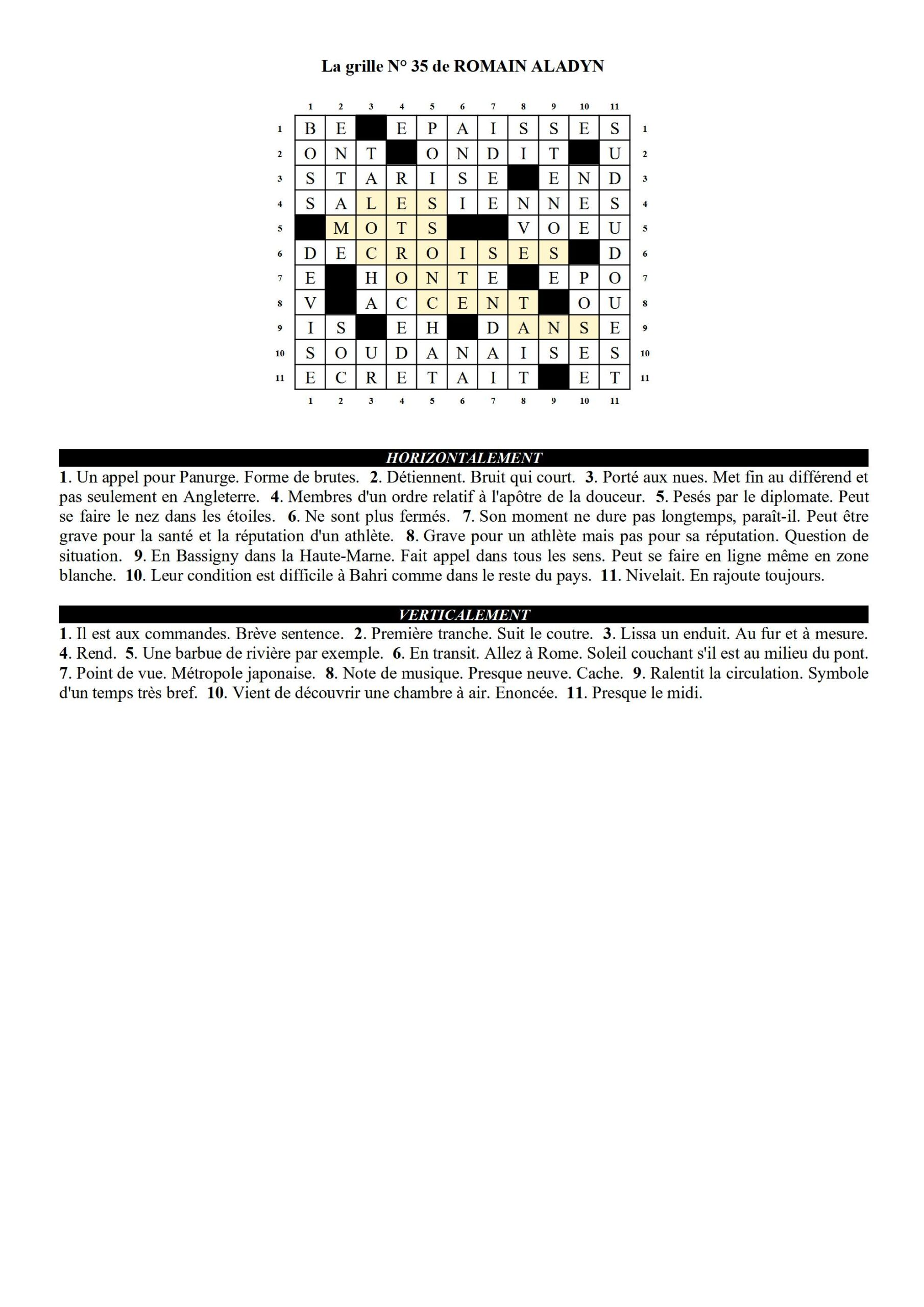 Pour enregistrer la grille, cliquez Ici. Ce lien pointe vers un document PDF pour une plus grande facilité de lecture.