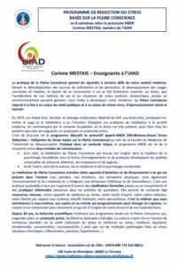 PROGRAMME DE REDUCTION DU STRESS basée sur la pleine conscience