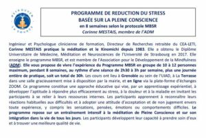 PROGRAMME DE REDUCTION DU STRESS basée sur la pleine conscience
