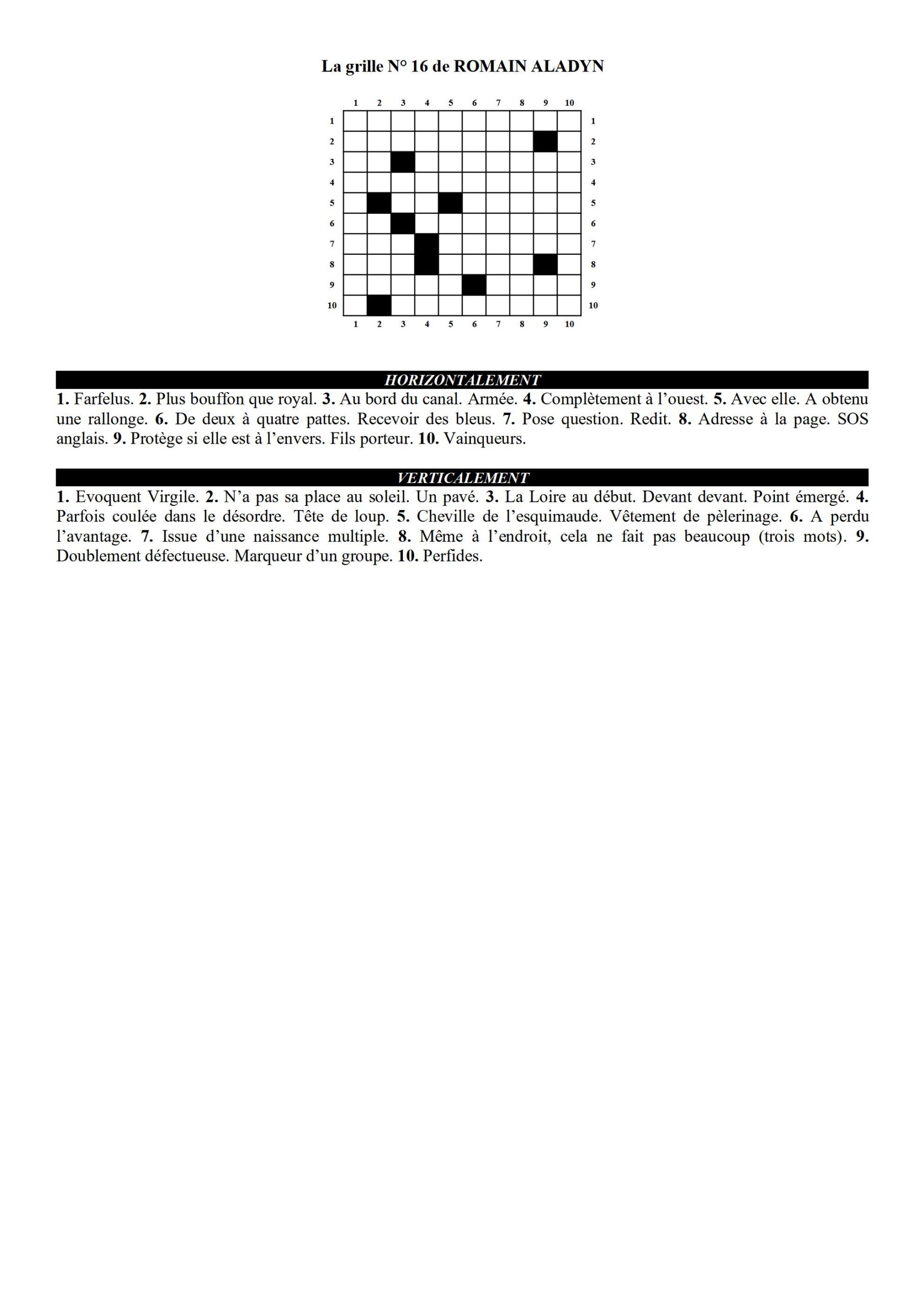 Vous la trouverez sous la signature Romain Aladyn, pseudonyme qu’ils se sont choisi. La solution de la grille est fournie la semaine suivante.