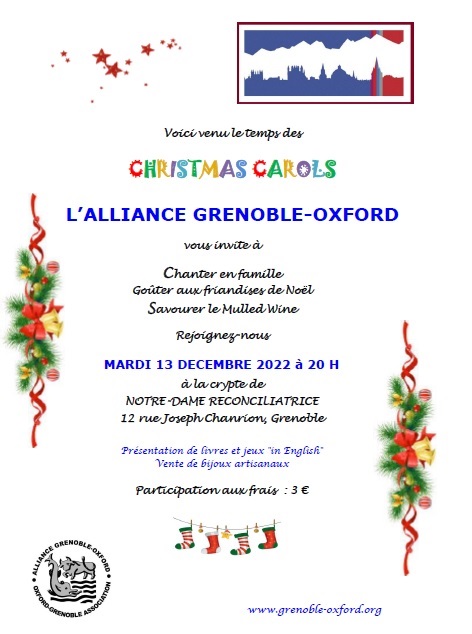 Nous chanterons aussi les Christmas Carols à 11 h le samedi 17 et le dimanche 18 décembre devant les Halles Sainte-Claire avec vous et les passants qui auront envie de se joindre à nous.
