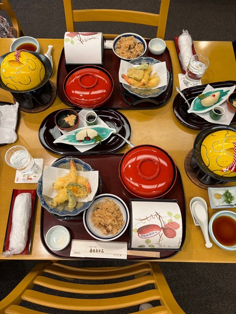 Le Japon se découvre aussi par sa savoureuse gastronomie que nous avons appréciée chaque jour sous des formes variées: Kaiseki, tempuras, rāmen, okonomiyaki, bento et tant d’autres, dans des restaurants typiques et des ryokans (auberges traditionnelles).