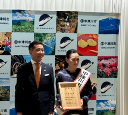 Wakiko avec le monsieur le maire de Nakatsugawa, Oguri san
