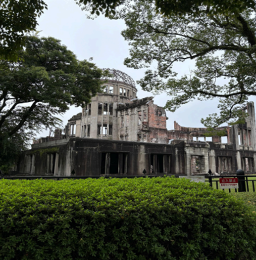 Le dôme de Genbaku (ou dôme de la bombe atomique), bâtiment emblématique de la ville construit en 1915 pour l’Exposition Universelle, et situé à 160 mètres de l’épicentre, est le seul à ne pas s’être effondré. Conservé volontairement tel quel depuis et inscrit au patrimoine mondial de l’ Unesco (1996) il est devenu le Mémorial de la Paix d’Hiroshima.