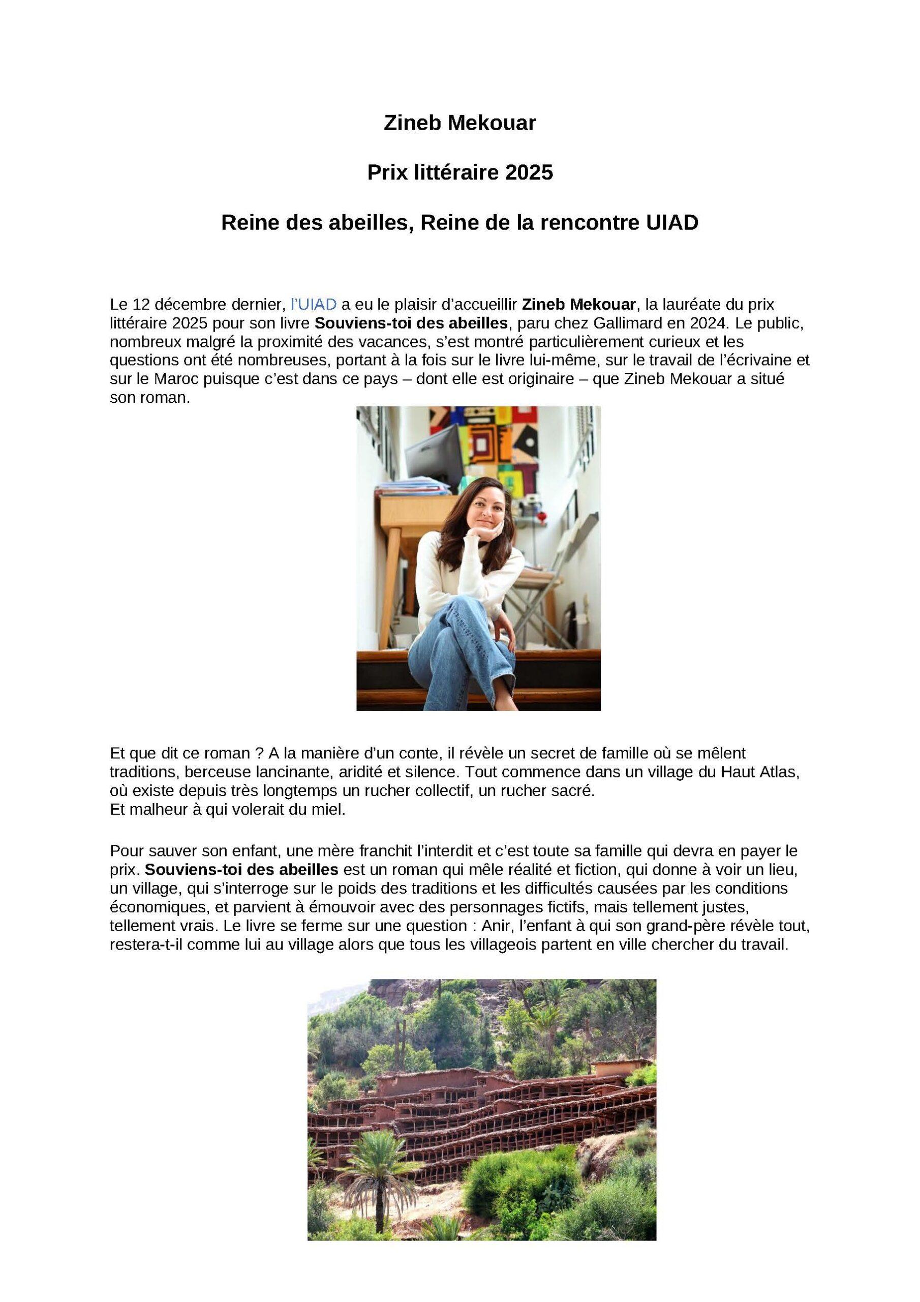 Zineb Mekouar, lauréate du prix littéraire 2025 par Thesie Fontaine · 30 janvier 2026 Article proposé par Jérome Oddoux